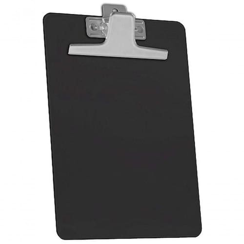 Prancheta ofício em poliestireno com prendedor metálico, livre de rebarbas. A prancheta possui um ótimo acabamento e é muito resistente.