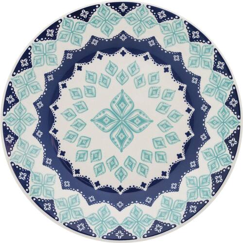 Kit 12 Pratos Rasos Donna Lola Oxford Cerâmica 24cm - Essa decoração faz referência ao Nhanduti, um tipo de renda bordada típica do Paraguai. Acredita-se que a técnica teve origem na Espanha e foi trazida para a América do Sul pelos colonizadores. Linhas coloridas são amarradas pelos artesãos, criando lindas e complexas formas que decoram muitas vestimentas e adereços paraguaios. Especificações: Uso: Resistente a micro-ondas, Resistente a lava-louças Material: Cerâmica Formato: Redondo Decoração: Estampado Cor: Azul claro, Azul escuro 12 Pratos Rasos com 24 cm de Diâmetro. Características Gerais do Produto: Acompanha o produto: 12 Pratos rasos Oxford Donna Lola : contra no transporte Marca: Não Informado