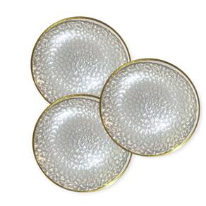 Kit 12 Pratos Redondo Acrílico Luxo Borda Dourado 25Cm