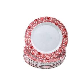 Kit 12 Pratos Refeição 25cm Vermelho Melamina Decorado Bar