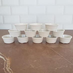 Dimensões de cada ramekin: 5,7cm (D) x 2,5cm (A);