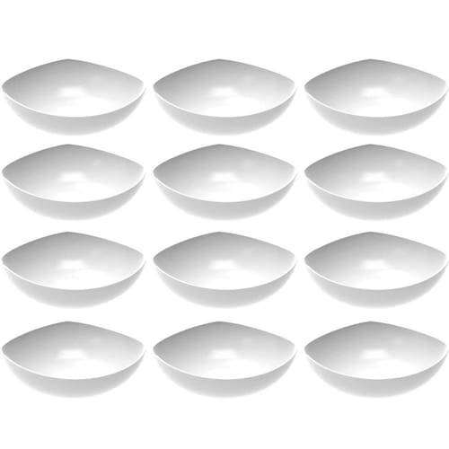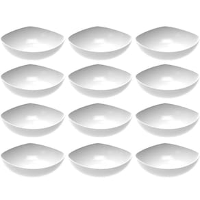 Garantia: 90 dias / Peso de cada: 352g / Cor predominante: branco / Ref.: 7794462332863; Dimensões de cada saladeira: 29,3cm (D) x 9,9cm (A); Conteúdo: 12 saladeiras plásticas; Material: polipropileno.
