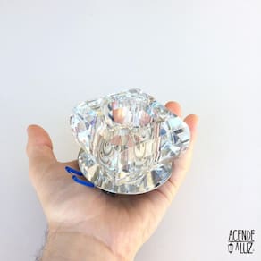 Descrição: - Materiais: Cristal e Inox - Soquete: G9 - Tipo de lâmpada: LED ou halógena - A cor da luminosidade será determinada pela lâmpada - Potência máxima: 40W - Produto de alta qualidade - Garantia 1 ano - Dimensões: Base: 8 cm Cristal CxLxA: 7 x 7 x 5 cm Recorte da Superfície: 5 a 6 cm Informações importantes - Atente-se as medidas do produto - Produto para embutir geralmente utilizado em gesso, forro ou móveis. Como todo o spot de embutir, para instalar, é necessário fazer um recorte na superfície onde vai ser aplicado. - Não pode ser instalado em caixinha de luz, como uma luminária de sobrepor. Não acompanha lâmpada
