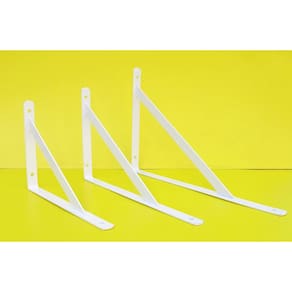Suporte para Prateleira Mão Francesa Para Prateleiras de 40cm Tamanho Real: 38,5x23,5cm KIT COM 12 Unidades de Suporte para Prateleira Mão Francesa Para Prateleiras de 40cm 36 Buchas Bux 10mm 36 Parafusos Suporte Tradicional para Fixação em Paredes, para Diversos tipos de Prateleiras. Pintura Eletrostática Branca Reforço Central para Suportar maior Peso Acompanha buchas e parafusos para fixação dos suportes em paredes de alvenaria.