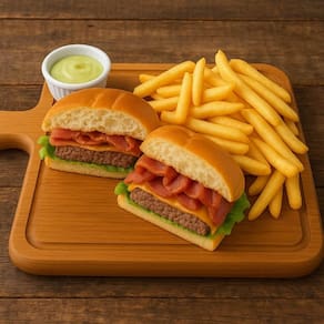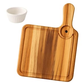Kit 12 Tábuas Teca 35x22cm com Molheira 30ml para Servir Hambúrguer Petisqueira Zanline.
