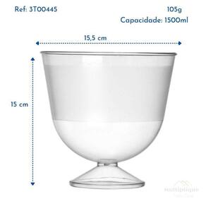 Kit 12 Taça Tacinha Sobremesas Doces Acrílico Festas 1500ml Kit 12 Taça Tacinha Sobremesas Doces Doceira Acrílico Festas 1500mlQualidade, beleza e funcionalidade em suas festas e eventos CONTEUDO12 Taça Tacinha Sobremesas Doces Doceira Acrílico Festas 1500ml Taça taçinha, fabricada em poliestireno e polipropileno, moderna e resistente, utilizada e recomendada por profissionais de sucesso.Qualidade e sofisticação em suas festas e eventos, para servir sobremesas, salada de frutas, bolo gelado, gelatina, marshmallow, serviços de bomboniere, servir capsulas de café e muito mais. CARACTERÍSTICAS- Cor Branca Transparente- Material Poliestireno e Polipropileno- Produto não toxico- Ideal para servir sobremesas, salada de frutas, bolo gelado, gelatina, marshmallow, serviços de bomboniere, servir capsulas de café e muito mais Marca: Três TriângulosRef: 3T00445Fotos meramente ilustrativas, outros objetos não acompanham o produto anunciado. DIMENSÕES INDIVIDUAIS APROXIMADASAltura: 15cmLargura Boca: 15,5cmLargura da Base: 8cmCapacidade: 1500mlPeso: 105g