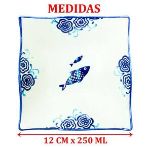Características Gerais do Produto: - Material: Cerâmica - Modelo: Tigela Peixe - Cor: Azul; Branco - Dimensões aproximadas: Altura 5cm X Diâmetro 14cm - Capacidade em litros: 250ml Garantia: - Garantia do site - 1 Mês
