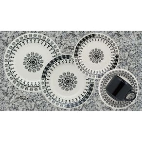 Kit 12 Tigelas Donna Folk Oxford Cerâmica 500 Ml - Elegância para a sua cozinha. A cor preta é básica e neutra, um verdadeiro curinga na hora de montar a mesa. Nessa louça, colocamos a cor preta numa estampa mais alegre e jovial, perfeita para quem prefere um formato de pratos tradicional com uma decoração mais alegre. A xícara preta, sem decoração, cria uma linda composição com as demais peças. Especificações: Uso: Resistente a micro-ondas, Resistente a lava-louças Material: Cerâmica Formato: Redondo Decoração: Estampado Cor: Preto Conteúdo da embalagem: 12 Tigelas Bowl 500ml Características Gerais do Produto: Acompanha o produto: 12 Tigelas Oxford Donna Folk : contra no transporte Marca: Não Informado