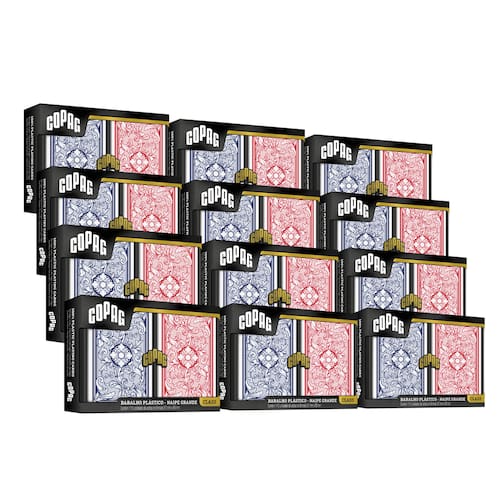 Kit 12 Unidades Baralho Class Legacy Estojo Duplo Class é a linha de baralhos plásticos Copag ideal para os jogadores mais exigentes. Com deslize único, os baralhos possuem alta durabilidade e são resistentes ao manuseio e marcações. São 6 modelos novos de baralho plástico em estojo duplo, com versos clássicos e contemporâneos.