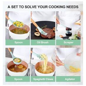 Kit 12 peças utensílios de cozinha linha premium silicone térmico+cabo de madeira bambu Design, aderência, conforto, sustentabilidade Ideais para proteger suas panelas antiaderentes de arranhões,esse lindo kit utensílios foi projetado de forma altamente ergonômicaosutensílios que compõem esse kit são fabricados emem bamboo e silicone resistentes a altas temperaturasetambém são livres de bpa e Cinza. Além de lindos e resistêntes, contam com cabo amadeirado, que não transmite calor para suas mãose tambémum design ergonômico, contam também com um pequeno furo em uma de suas extremidades, proporcionando aos usuários a possibilidade de guardar seus talheres suspensos em suportes na parede, se necessário. Além de lindos e resistentes, são confortáveis e não transferem calor para suas mãos. Um produto completo, indispensável, com muita qualidade que você com certeza precisa ter na sua cozinha. Esse kit também pode ser o presente ideal para datas comemorativas Com 12 peças, capaz de atender a todas as suas necessidades na cozinha, são utensílios antibacterianos, livres de cola, atóxicos, antiaderentes, fáceis de limpar e armazenar. Itens inclusos: 1 - colher de raspagem; 32,2 cm ; 1 - pegador de massas; 32,2 cm ; 1 - pincel culinário; 27,5 cm ; 1 - fouet batedor ; 25 cm ; 1 - espátula vazada; 32,2 cm ; 1 - pegador de salada; 27 cm ; 1 - colher vazada; 32,2 cm ; 1 - colher funda; 32,2 cm ; 1 - colher rasa; 32,2 cm ; 1 - concha de sopa; 32,2 cm ; 1 - espátula; 32,2 cm ; 1 - porta-utensílios. altura 15 cm. Circunferência 10 cm ; Características Design: aderência, conforto e silicone térmico; Suavidade: maciez, proteção para panelas antiaderentes; Durabilidade: resistente a altas temperaturas, não deforma e não resseca; Segurança: material atóxico, não cria bolor/fungos e possui silicone de alta qualidade que não deixa gosto ou odores nos utensílios; Conveniência: fácil de limpar, sem ruídos ao encostar em panelas e outros utensílios. Especificações técnicas: Composição: madeira, silicone térmico de alta qualidade e inox Opções de cor : preto/verde/vermelho/cinza/rosa Número de peças: 12 Temperatura suportada: de -40c até 230c Qualquer dúvida adicional estamos à disposição, Somos platinum - excelência em qualidade e atedimento ao cliente.