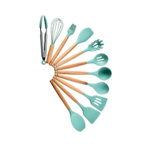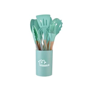 Kit de 12 Utensílios de Cozinha em Silicone com Cabo de Madeira
