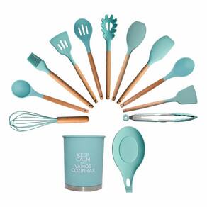 Lindo jogo com 13 utensílios domésticos, para deixar a hora do preparo da sua comida mais alegre e gostoso.
