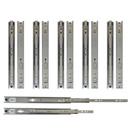 Kit com 7 pares de Corrediças Telescópicas Trilho Zincada 400mm 16Pol. Par para Gaveta Rayco A Corrediça telescópica 400mm da Rayco é indicada para gavetas de cozinhas, closets, quartos, banheiros, lavanderias, prateleiras retráteis/extensíveis, bases de teclado e mobiliário em geral. - Marca: Rayco - Referência: R14655-7X - Acompanha 7 pares de corrediças - Comprimento: 400mm 16 Polegadas - Largura: 30mm - Espessura: 10mm - Para uso geral - Possibilita a abertura total da gaveta com deslizamento suave, preciso e resistente - Corpo em aço galvanizado - Deslizamento através de de aço - Tipo: telescópica - O par suporta até 20kg - Peso: 300 gramas - : 90 dias Marca: Não Informado