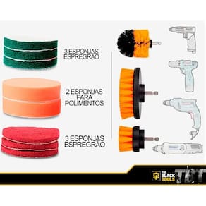 Itens inclusos: - 04 escovas rotativas 5, 4, 3,5, 2 ; - 01 base para esfregão/esponja; - 01 extensor de 150mm; - 06 esfregões de 5; - 02 esponjas de 5. Marca: Não Informado