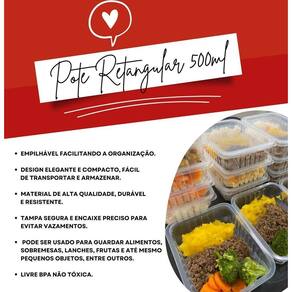 LOJA OFICIAL EMBANET. Pote Retangular 500ml tornando sua rotina mais ágil, aumentando a vida útil de alimentos. Embalagens resistente ao frio e ao calor, vão direto do freezer ao micro-ondas sem deformar ou contaminar os alimentos preservando o aroma e o sabor. Oferece espaço suficiente para armazenar suas refeições, desde saladas, massas, carnes, legumes e outros pratos. Traz diversos benefícios e diferenciais. Seja para levar suas refeições ao trabalho, escola, academia ou viagens, esse pote é uma opção prática e saudável. Ele ajuda você a se manter na dieta, controlar as porções e economizar dinheiro ao preparar suas próprias refeições. Outro diferencial do pote marmita é sua versatilidade. Além de armazenar alimentos, ele também pode ser para guardar sobremesas, lanches, frutas, snacks e até mesmo pequenos objetos, como bijuterias, medicamentos, entre outros. Itens Inclusos: 144 unidades de potes 144 unidades de Tampas Especificações: Medidas externas: 164x120x52mm Medidas internas: 128x83x46mm Material: PP Capacidade: 500ml Na EMBANET você encontra materiais de alta performance, durabilidade e ótimo acabamento, não tóxico e ecologicamente correto. Oferecendo um ótimo custo benefício. Realizamos o envio de forma rápida e segura, para que receba seu produto em perfeitas condições, evitando problemas ou danos durante o transporte. Garantindo qualidade e satisfação aos nossos clientes. Trabalhamos com diversos tipos de embalagens. Veja mais anúncios do vendedor. Marca: Não Informado