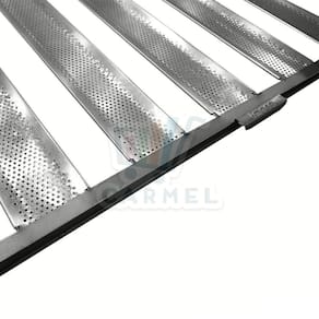A Assadeira para pão francês ou salgado IMECA é feita em alumínio e possui 5 tiras com capacidade para até 25 pães de 50g. O fundo da assadeira é feito de tela de alumínio perfurada, o que facilita o trabalho e a limpeza do produto.