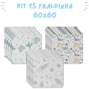 Kit 15 Fraldas De Pano Para Bebe 60X60Cm Masculino