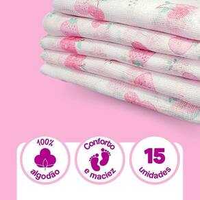 A fralda de pano minasrey é mais do que essencial no enxoval do bebê. Esse kit com 15 unidades de fralda com estampas, é nota 10 no que diz respeito a relação custo x benefício. Confeccionada em 100% algodão, o que proporciona conforto e maciez para a pele sensível do bebê. Seu tamanho é excelente, pois possibilita inúmeras utilizações como: fraldinha para cochilar, de ombro, para proteger no bebê conforto ou carrinho, para forrar qualquer superfície quando necessário, entre outros. Possui estampas lindas, delicadas e alegres. Principais características: Contém 15 unidades. Composição: 100% algodão macio e confortável Medidas: 60cm x 60cm Marca: caricia baby minasrey Idade: a partir do primeiro dia de vida Estampas : feminino Atenção: favor seguir as orientações do modo de lavar do fabricante para maior durabilidade do produto. Instruções de manutenção: lavar à mão, não lavar a seco Cor: Rosa Material: tecido Composição:100% algodão Tipo: fraldas de pano para bebês Revestimento: 100% poliuretano Marca: Não Informado Ean: 7899915625797