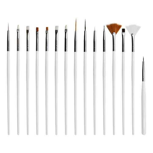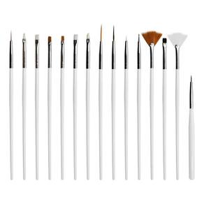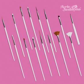 Contém: 01 - Kit com 15 Pincéis para Decoração de Unhas, Branco