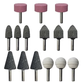 Kit 15 Pontas Montadas Rebolo Abrasivo Haste 6mm Multiuso Bravo Tools - Marca: Bravo Tools - Referência: BV1006 - Indicada para limpezas e acabamentos em superfícies - Diâmetro da haste: 6mm - 3 Ponta Cilíndrica Branca 22 x 22mm Grão Fino - 3 Ponta Tipo Roda Rosa 24 x 12,5mm Grão Médio - 3 Ponta Tipo Bala Cinza 16 x 26mm Grão Grosso - 3 Ponta Tipo Árvore Cinza 24 x 35mm Grão Grosso - 3 Ponta Tipo Cônica Cinza 19 x 27mm Grão Grosso - Material da ponta: Óxido de alumínio Corundum - As pontas montadas são indicadas para uso geral - Uso em retificadeiras e furadeiras de qualquer marca com mandril de 6mm - Indicada para afiação, esmerilhamento e desbaste em metais, joias, pedras preciosas, vidro, entre outros materiais - Ideal para trabalhos detalhados em uma variedade de superfícies, oferecendo remoção de material suave e precisa - Seu formato facilita o trabalho em locais de difícil acesso - Velocidade máxima: 25.000rpm - Peso bruto: 90 gramas - : 90 dias contra defeitos de fabricação Marca: Não Informado