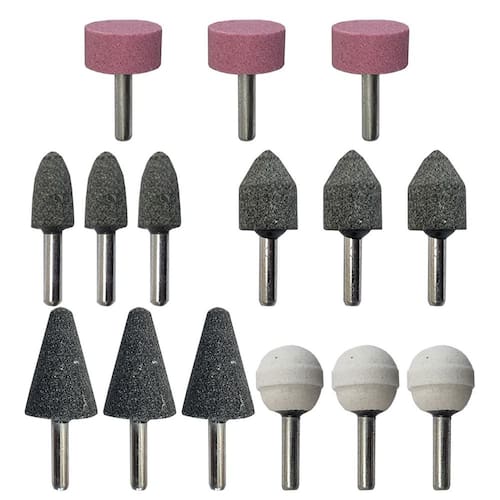 Kit 15 Pontas Montadas Rebolo Abrasivo Haste 6mm Multiuso Bravo Tools - Marca: Bravo Tools - Referência: BV1006 - Indicada para limpezas e acabamentos em superfícies - Diâmetro da haste: 6mm - 3 Ponta Cilíndrica Branca 22 x 22mm Grão Fino - 3 Ponta Tipo Roda Rosa 24 x 12,5mm Grão Médio - 3 Ponta Tipo Bala Cinza 16 x 26mm Grão Grosso - 3 Ponta Tipo Árvore Cinza 24 x 35mm Grão Grosso - 3 Ponta Tipo Cônica Cinza 19 x 27mm Grão Grosso - Material da ponta: Óxido de alumínio Corundum - As pontas montadas são indicadas para uso geral - Uso em retificadeiras e furadeiras de qualquer marca com mandril de 6mm - Indicada para afiação, esmerilhamento e desbaste em metais, joias, pedras preciosas, vidro, entre outros materiais - Ideal para trabalhos detalhados em uma variedade de superfícies, oferecendo remoção de material suave e precisa - Seu formato facilita o trabalho em locais de difícil acesso - Velocidade máxima: 25.000rpm - Peso bruto: 90 gramas - : 90 dias contra defeitos de fabricação Marca: Não Informado Ean: 7734625974837