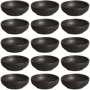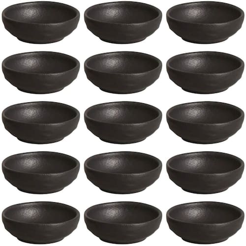 Kit 15 Ramequins 70ml Cerâmica Orgânico Preto Porta Shoyu Buffet Porto Brasil.
