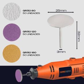 Jogo de Lixa Adesiva 150 Peças para Micro Retífica e Mini Lixadeira Pedicure Dremax Kit de lixas adesivas para micro retíficas e mini lixadeiras para remoção de calos cutículas do pé, kit pedicure, limpador de pele morta dura e uso geral de lixamento - Marca: Dremax - Referência: JLA150 - Haste: 2,35 mm 3/32 Pol. - Diâmetro da cabeça: 25mm - Comprimento total: 32mm - 1 Haste para lixas adesivas - 50 Lixas Adesivas Brancas Grão 60 - 50 Lixas Adesivas Roxas Grão 120 - 50 Lixas Adesivas Douradas Grão 180 - : 90 dias contra defeitos de fabricação A DREMAX é a primeira e única marca brasileira dedicada exclusivamente às micro retíficas, acessórios e acoplamentos para esta indispensável ferramenta. Seja para trabalhos de precisão, artesanato, modelagem ou reparos, a DREMAX tem o produto certo para você. Marca: Não Informado
