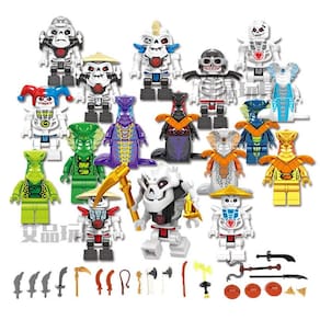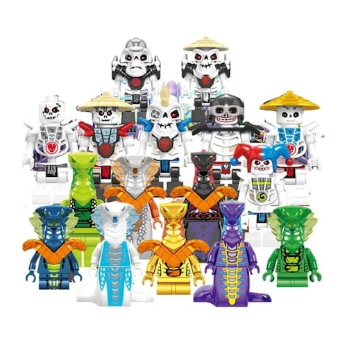 O kit inclui 16 bonecos Miniaturas em blocos de montarAltura aproximada: 4cmMaterial: PVCInclui acessórios e basesIdade recomendada: +6 (contém peças pequenas) Marca: BLOCO DE MONTAR