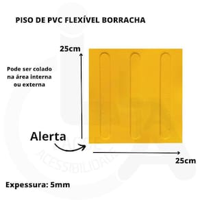 Material PVC Flexível macio e confortável ao pisar. Medidas: 250 x 250 x 5 mm. Aplicação por cola de contato uso interno e externo . Não acompanha cola.