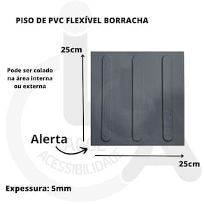 Material PVC Flexível macio e confortável ao pisar. Medidas: 250 x 250 x 5 mm. Aplicação por cola de contato uso interno e externo . Não acompanha cola.