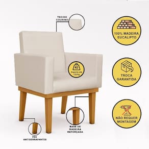 Tipo de produto: Poltrona | Quantidade de caixas de embalagem: 4 | Profundidade da cama: Não Aplica | Marca: Balaqui Decor | Largura: 61 cm | Modelo: Poltrona Nina com Base | Profundidade: 60 cm | Material dos pés: Madeira | Fabricante: Balaqui Decor | Largura da cama: Não aplica | É sofá-cama: Não | Mecanismo de abertura do produto: Não Aplica | Fonte do produto: Não aplica | Desenho do tecido: Liso | Quantidade de peças: 8 | Com pés desmontáveis: Caramelo | Material do estofamento: Courino | Densidade da espuma do assento: D-23 | Formato do sofá: Poltrona | Altura: 87 cm | Comnto do colchão: Não Aplica | Material de enchimento do encosto: Espuma | Materiais da estrutura: Madeira | Altura da cama: Não aplica | Requer montagem: Não | Peso: 10,5 kg | Orientação do sofá: Não aplica | Estilo: Clássico | Quantidade de lugares: 8 | Inclui cama auxiliar: Não | Peso máximo suportado: 120 kg | É reclinável: Não | Com tecido removível: Não | Largura do colchão: Não aplica | Acessórios incluídos: Não | Condição do item: | Unidades por kit: 8 | Cor dos pés: Caramelo | Inclui colchão: Não | É kit: Não