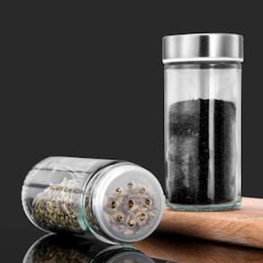 Contém; 01 Conjunto 16 Potes de Condimentos Vidro 80ml - Inox