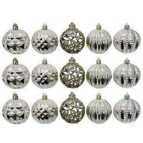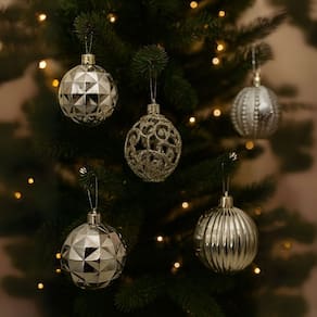 Deixe sua árvore de Natal ainda mais elegante com este kit de 18 bolas decorativas champanhe, em um mix de modelos metalizados lisos e arabescos vazados com glitter, criando um efeito sofisticado e harmonioso.
