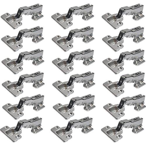 Kit com 18 Dobradiças 35mm Curva para Moveis com Pistão Amortecedor e Calço Slide ON