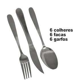 Kit Talheres 18 peças Material Inox 6 Colheres 6 Facas 6 Garfos