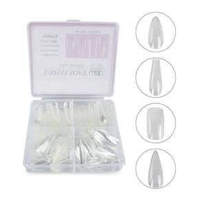 Contém: 48 - Unhas de plástico PVC transparente formato almond; 48 - Unhas de plástico PVC transparente formato bailarina; 48 - Unhas de plástico PVC transparente formato quadrado; 48 - Unhas de plástico PVC transparente formato stiletto.