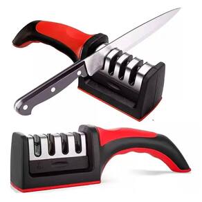 Kit 2 afiador amolador de facas 4 opções de afiar ========== sobre o produto ========== O afiador amolador de facas com 4 opções de afiar é a escolha ideal para manter suas facas sempre afiadas com praticidade e segurança. Com quatro níveis de afiação, ele permite desde o desbaste mais grosso até o polimento final da lâmina. Seu design ergonômico com base antiderrapante garante firmeza no uso e conforto ao manusear, sendo perfeito para uso doméstico ou . ========== especificações ========== 4 estágios de afiação, para afiar, afinar, polir e reparar a lâmina. Design ergonômico, com pegada confortável e segura. Base antiderrapante, que proporciona estabilidade durante o uso. Ideal para uso doméstico e , rápido e eficiente. ========== ficha técnica ========== Unidades: 2 Medidas: 21,5 x 5,8 x 5,1cm Material: plástico abs, aço inox e pedras de afiação : 3 meses Estamos online para quaisquer dúvidas, Agradecemos e aguardamos o seu pedido. P: pode ser em facas de cerâmica R: não, este modelo é indicado apenas para facas de aço. P: precisa de força para afiar R: não, basta deslizar a faca com leve pressão nos trilhos adequados. P: pode ser por pessoas sem experiência R: sim, é fácil de usar e muito seguro, ideal para qualquer nível de experiência. P: o produto é novo ou Marca: Não Informado