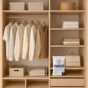 Absorve a umidade do ar e previne mofo, bolor e mau odor