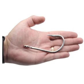 Anzol Grande Reforçado 17/0 Nickel. Anzol utilizado na pesca de jacaré e peixes de porte grande. Feito em aço carbono de alta resistência. Na pesca de jacaré aconselhamos a utilização de fio de aço Tamanho Altura: 9,5cm Comprimento: 4,8cm Peso: 26 gramas Marca: Não Informado Ean: 7895442502709