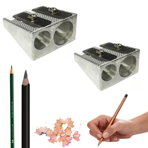 Praticidade em dobro com o kit de 2 apontadores duplos de metal Perfeitos para lápis comuns e lápis grossos de maquiagem, oferecem corte preciso e eficiente graças às lâminas afiadas e resistentes. Com corpo metálico durável, são ideais para uso escolar, profissional ou no nécessaire. Compactos e fáceis de transportar, garantem sempre pontas perfeitas para escrita, desenho ou maquiagem. Marca: Não Informado