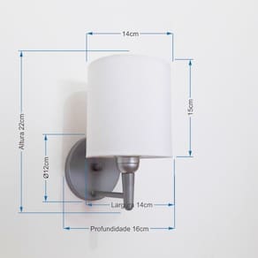 Kit/2 Arandela de parede Cilíndrica Md-2009 Base Cinza Cúpula Tecido 14x15cm BrancoAs arandelas Lustres Vivare são elementos versáteis e elegantes que podem transformar qualquer ambiente em um espaço cheio de estilo. Seja para adicionar uma iluminação suave, destacar uma parede ou criar um efeito de luz diferenciado.Cúpula em Tecido: 14x15cm Arandela de parede Montada: Altura 22cm Largura 14cm Profundidade 16cm Formato: Cilíndrico Tamanho: Pequeno Especificação:Material: Cúpula em Tecido Estrutura em Alumínio Base Parede: Diâmetro 11x1,2cm Resistente: Á Maresia Voltagem: 110V/220V Liga e Desliga: Não Tipo de Soquete: E27 Lâmpada Utilizada: Led Bulbo Até 16w ou Fluorescente Espiral Até 25w Cada Capacidade de Lâmpadas: 1 Observação:Acompanha Lâmpada: Não Possui Led Integrado: Não Garantia: 12 Meses Manual de Instalação: Sim Arandela de parede Montada: Sim Controle de Luminosidade: Não Tipo de Embalagem: Caixa Conservação e Manutenção do Produto:A Limpeza deve ser realizada com o produto desligado. Remova o lustre que pode ser lavado com sabão neutro. Nunca utilize produtos químicos e abrasivos Dica:Antes de comprar o seu produto verifique as medidas, o local onde pretende instalar e se necessário o serviço de um profissional qualificado.