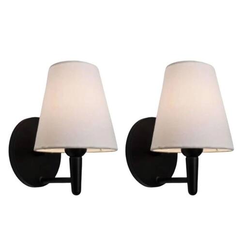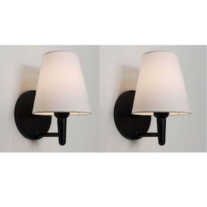 Kit/2 Arandela Cone Md-2004 Base Preto Cúpula em Tecido 14/14x07cm Branco - Bivolt Tela - Bivolt