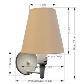 Kit/2 Arandela de parede Cone Md-2013 Branca C/ Inter Liga e Desl Cúpula Tecido PalhaAs arandelas Lustres Vivare são elementos versáteis e elegantes que podem transformar qualquer ambiente em um espaço cheio de estilo. Seja para adicionar uma iluminação suave, destacar uma parede ou criar um efeito de luz diferenciado.Dimensão:Cúpula em Tecido: 14x07x14cm