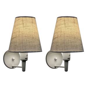 Kit/2 Arandela Cone Md-2013 Branco C/ Inter Liga e Desl Cúpula em Tecido Rustico Bege - Bivolt