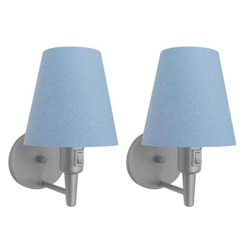 Kit/2 Arandela Cone Md-2013 Cinza C/ Inter Liga E Desl Cúpula Em Tecido Azul Bebê - Bivolt
