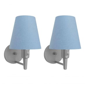 Kit-2 Arandela Cone Md-2013 Cinza C- Inter Liga E Desl Cúpula Em Tecido Azul Bebê - Bivolt
