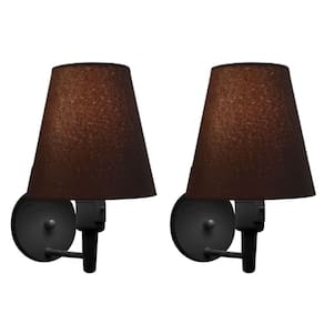 Kit/2 Arandela Cone Md-2013 Preto C/ Inter Liga e Desl Cúpula em Tecido Café - Bivolt