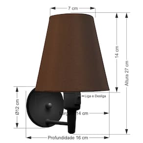 Kit/2 Arandela de parede Cone Md-2013 Preto C/ Inter Liga e Desl Cúpula Tecido CaféAs arandelas Lustres Vivare são elementos versáteis e elegantes que podem transformar qualquer ambiente em um espaço cheio de estilo. Seja para adicionar uma iluminação suave, destacar uma parede ou criar um efeito de luz diferenciado.Dimensão:Cúpula em Tecido: 14x07x14cm
