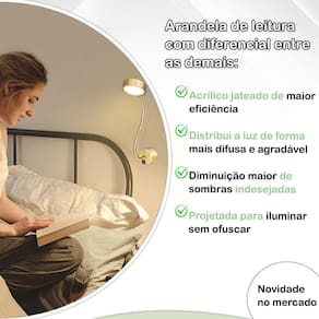 Kit 2 Arandela Leitura Direcionável Cabeceira Led 5W 3000K Bet72 Uma arandela de leitura com tecnologia de LED aprimorada combina design funcional e conforto visual. O LED atualizado oferece uma luz mais difusa e uniforme, eliminando sombras intensas e pontos de brilho que podem causar desconforto ocular. Ideal para ambientes de leitura ou relaxamento. Além disso, o design é moderno e compacto, com ajuste direcional que permite posicionar a luz de forma precisa, atendendo às necessidades de quem lê ou trabalha.