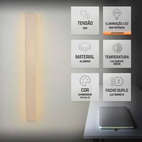 transforme seu ambiente com o kit/2 arandela profile, um modelo sofisticado que combina design moderno e iluminação eficiente. Seu acabamento em alumínio champagne proporciona um toque elegante e contemporâneo para qualquer espaço. Destaques do produto -com um design moderno e sofisticado - combinando com qualquer decoração e ambiente. -modelo : ar 6137 -cor es : champagne pintura pó . -material de alta qualidade : feita com um alumínio resistente para maior durabilidade. -acompanha fita de led embutida. -ideal para diferentes ambientes - perfeita para quartos, salas, escritórios e áreas gourmet. -peça com acionamento em instalado na residência. -modelo não recarregável. - de 3 meses. Especificações técnicas Kit/2 ar 6137 profile 65x40x725mm 3000k 15w 127v cp Material : alumínio Cor : champagne Iluminação : fita de led Led incluso 3000k branco quente Potência: 15w Voltagem : 127v Medida : 650mm x 40mm x 725mm Peso : 500gr Quantidade : 2 produtos. Observação : o produto necessita de instalação elétrica para o funcionamento adequado. Conteúdo da embalagem : 2 luminárias led. Marca: Não Informado